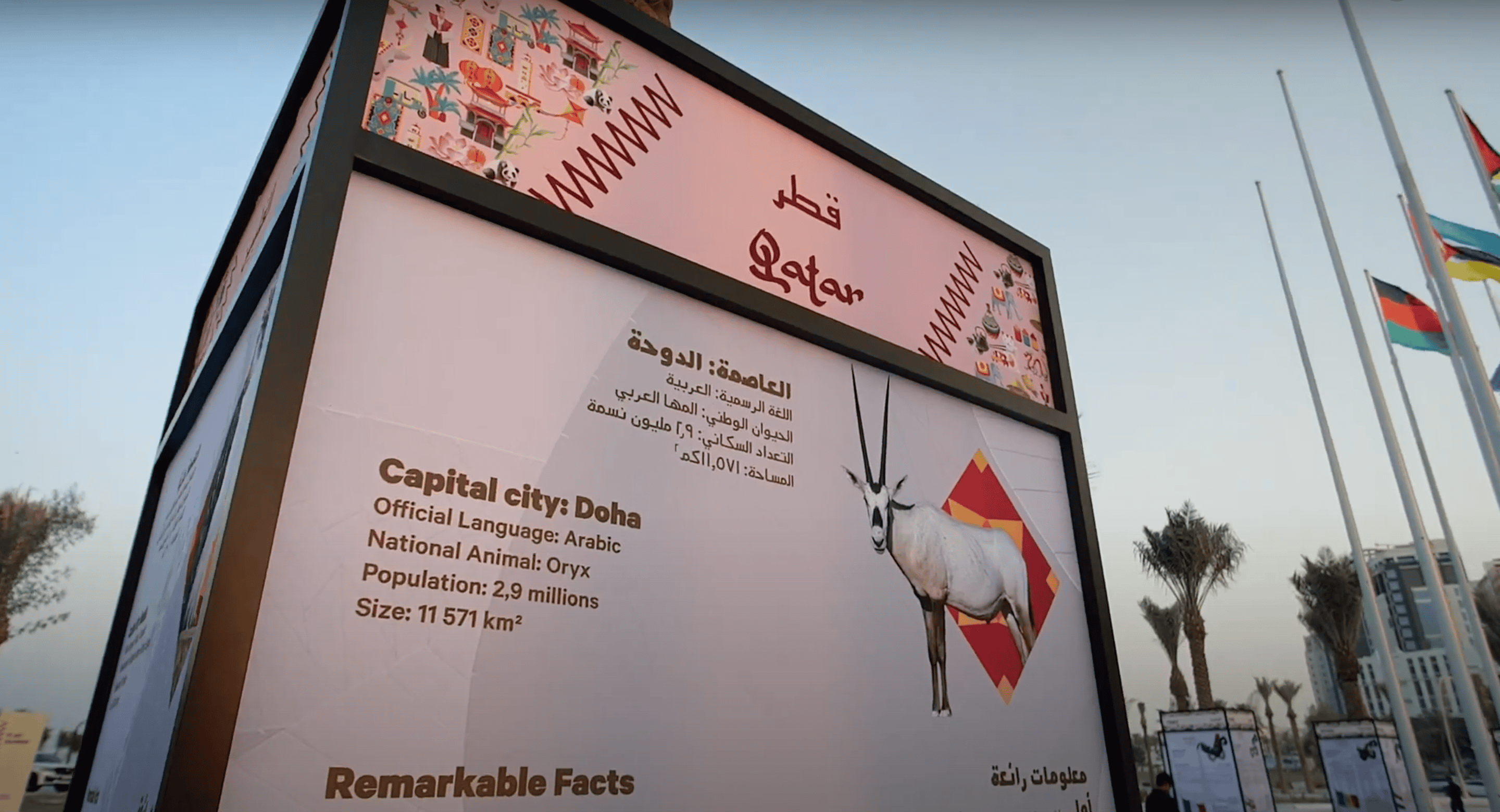 Flag Plaza is a new public space in Doha, initiated by the Years of Culture programme in celebration of our 10-year anniversary. 119 flags, representing the countries with embassies in Qatar, were raised to represent friendship and understanding between nations and their people during the year of the FIFA World Cup Qatar 2022™.